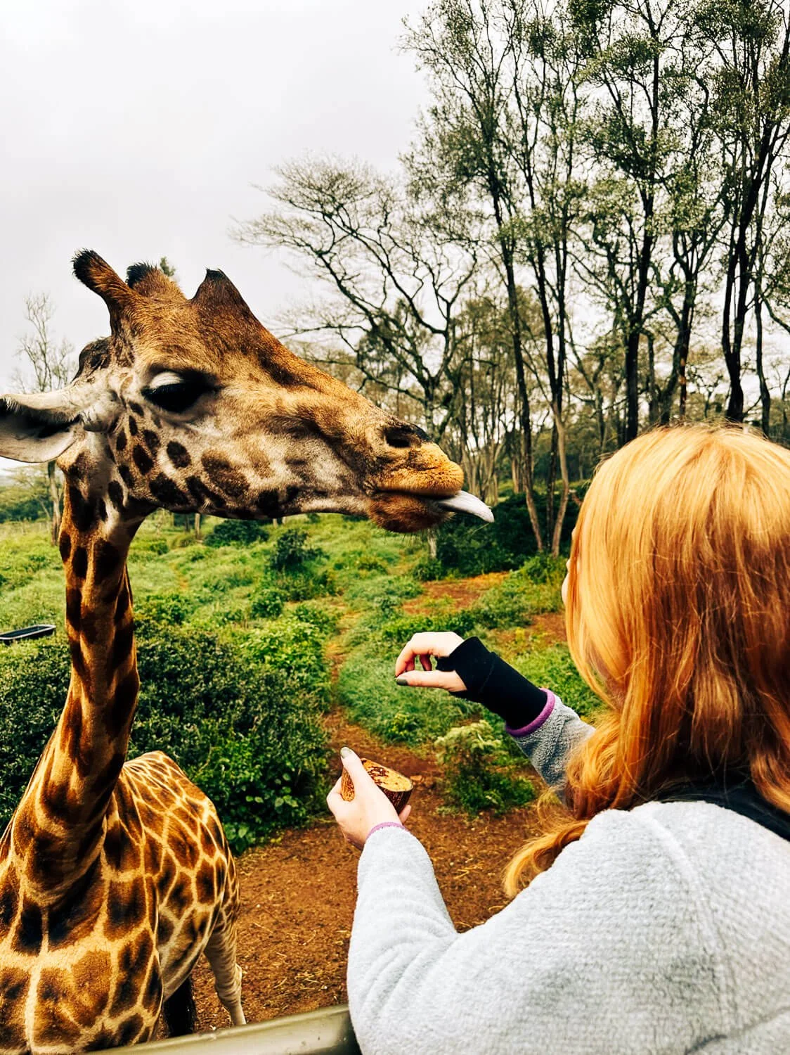 Feeding a giraffe at Giraffe Manor in Nairobi, Kenya