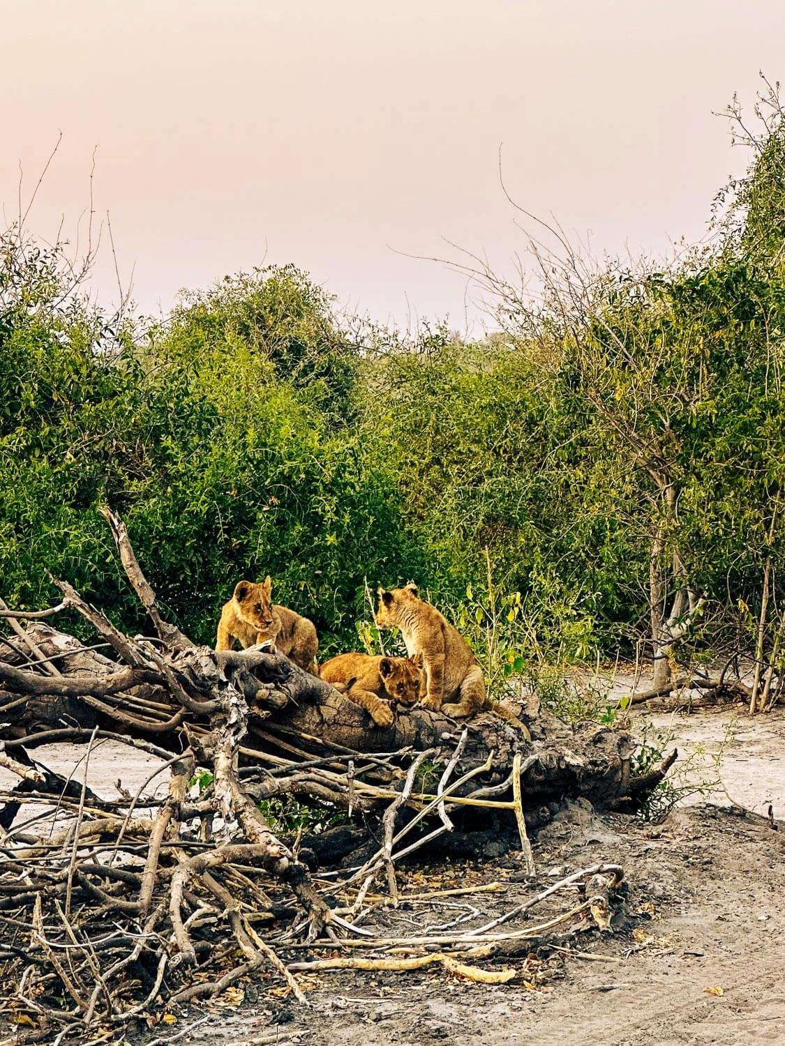 Lion cubs playing in the early morning in the Chobe National Park, Botswana - all thanks to the points game.